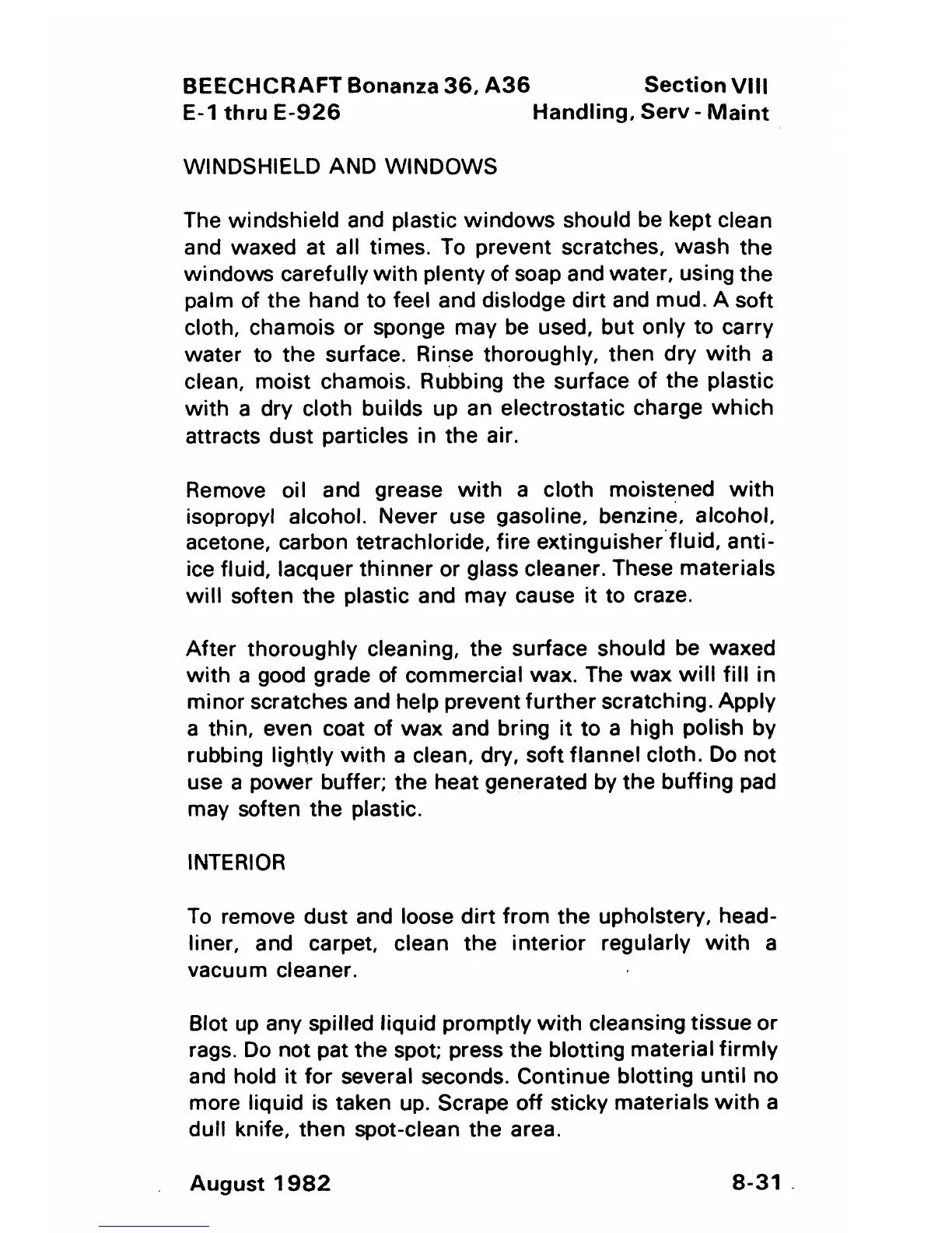 Beechcraft Bonanza 36 - Windshield and Windows Cleaning; Interior Cleaning