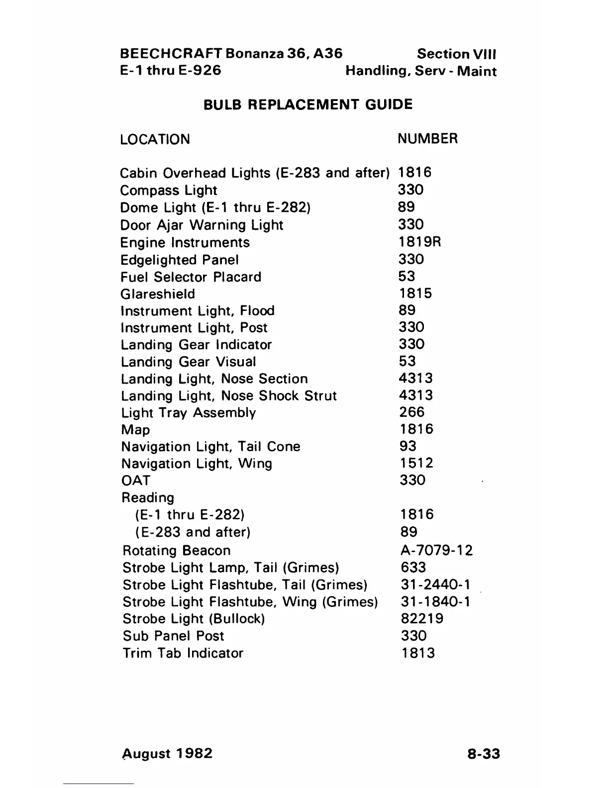 Beechcraft Bonanza 36 - Bulb Replacement Guide