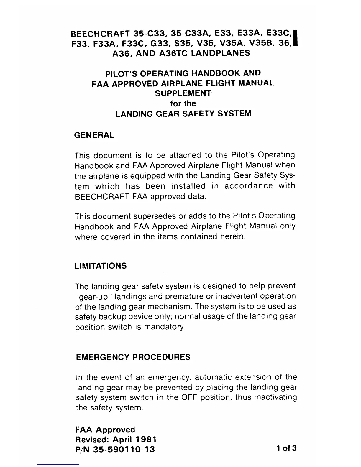 Beechcraft Bonanza 36 - Landing Gear Safety System