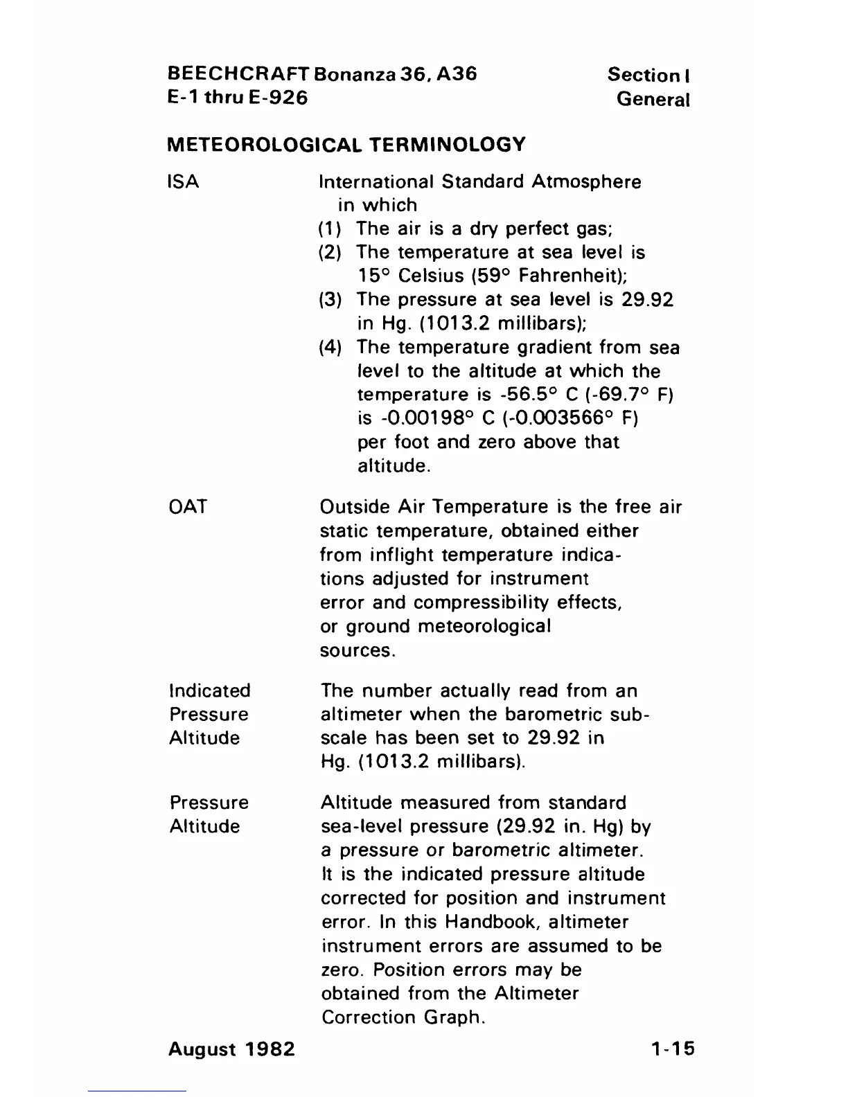 Beechcraft Bonanza 36 - Meteorological Terminology