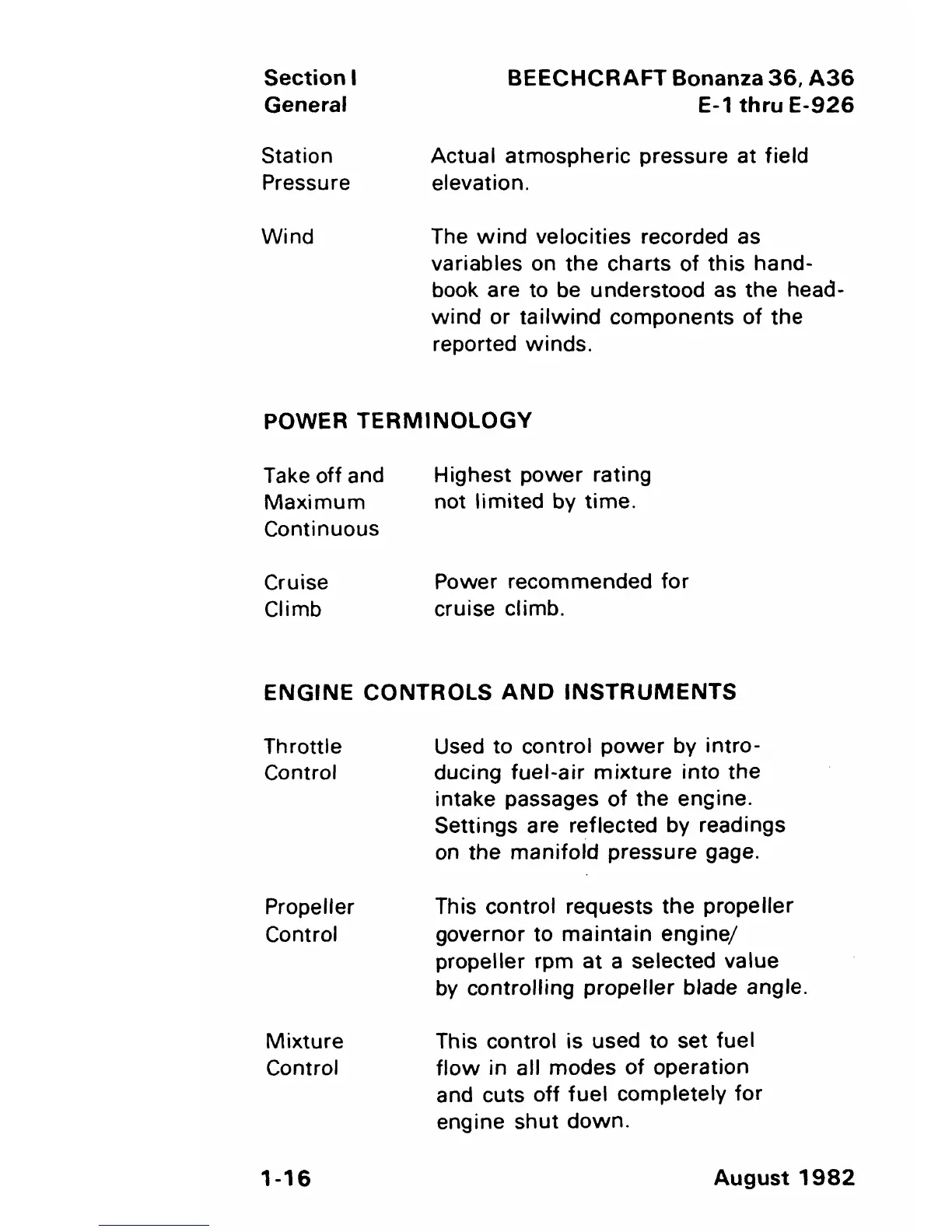 Beechcraft Bonanza 36 - Power Terminology; Engine Controls and Instruments