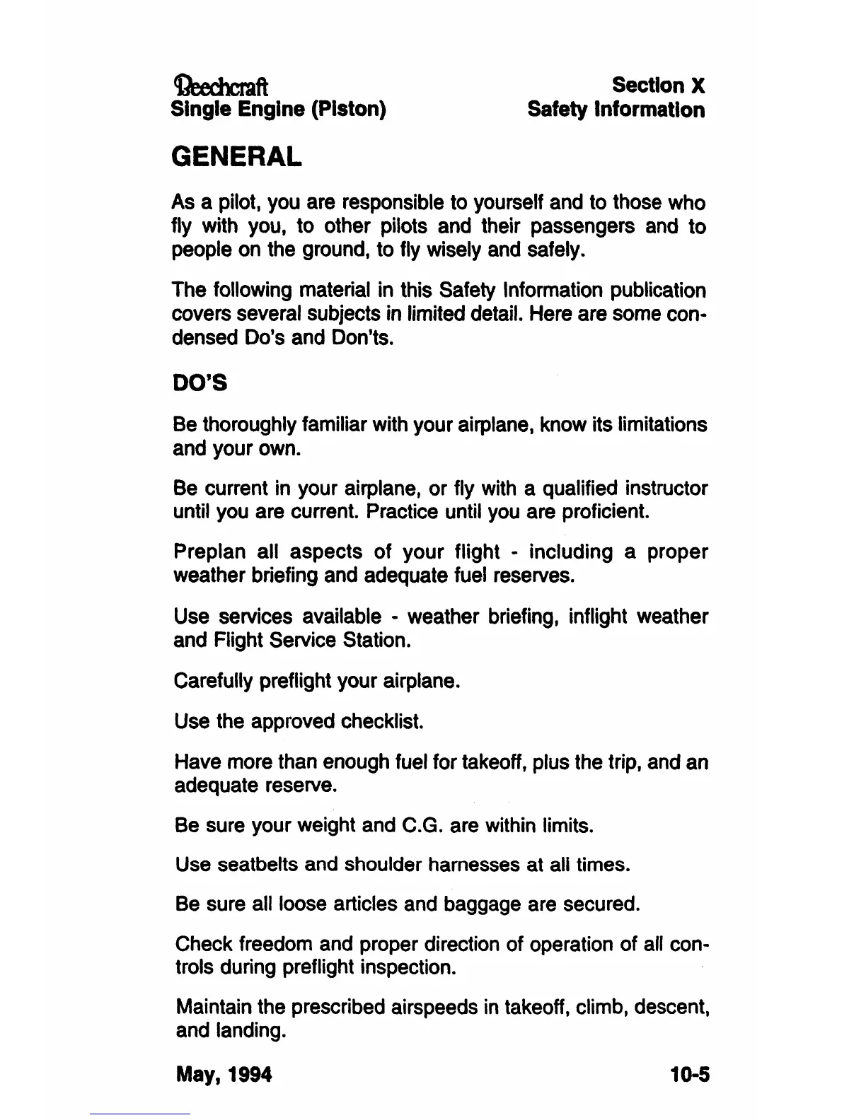 Beechcraft Bonanza 36 - Pilot Safety Information and Practices