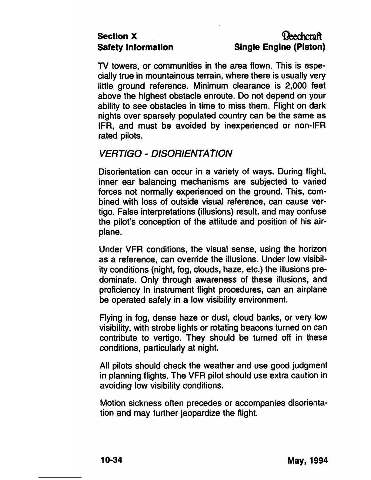 Beechcraft Bonanza 36 - Vertigo - Disorientation