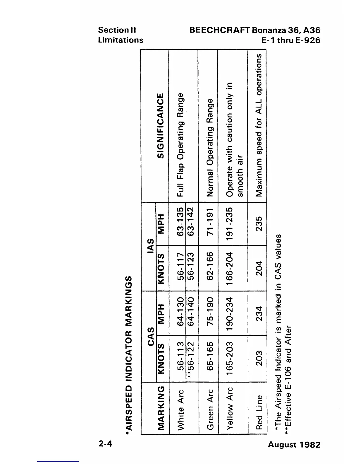 Beechcraft Bonanza 36 - Airspeed Indicator Markings