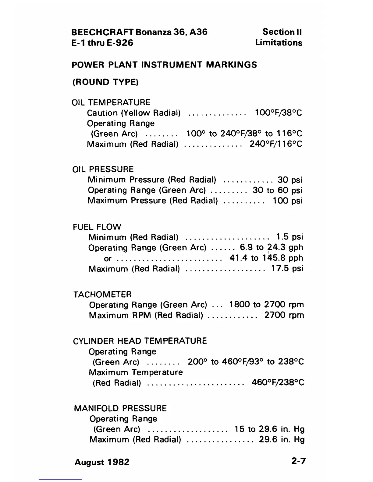 Beechcraft Bonanza 36 - Power Plant Instrument Markings (Round Type)