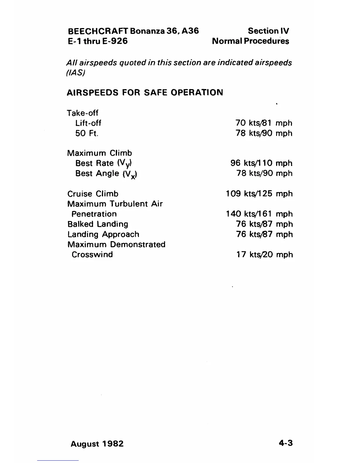 Beechcraft Bonanza 36 - Airspeeds for Safe Operation