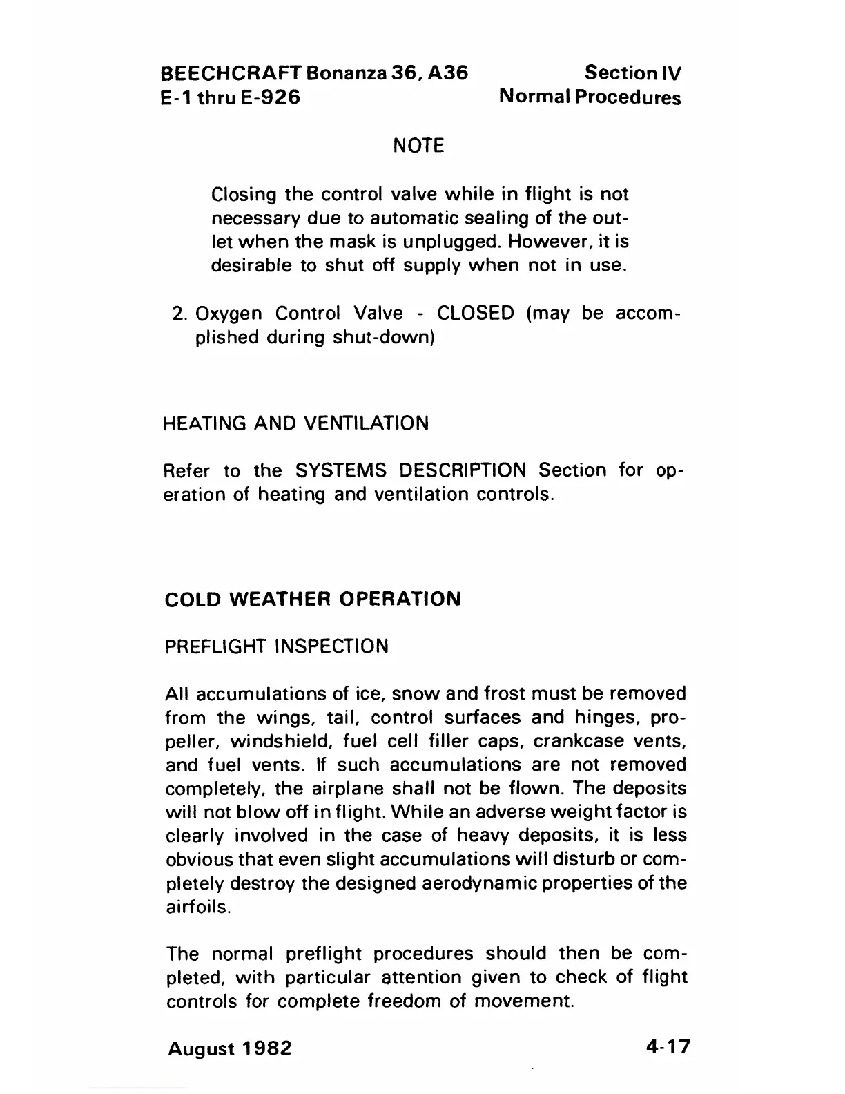 Beechcraft Bonanza 36 - Cold Weather Operation - Preflight Inspection