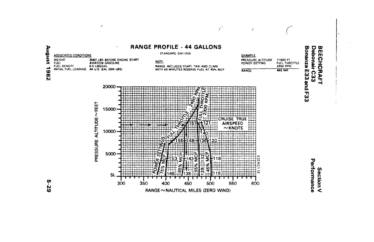 Beechcraft Bonanza E33 - Range Profile - 44 Gallons
