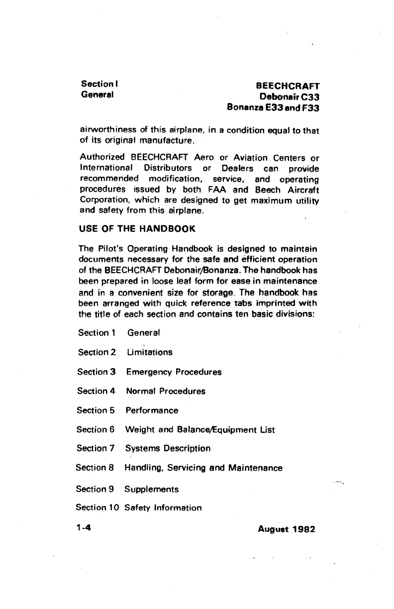 of the BEECHCRAFT Debonair/Bonanza. The handbook has