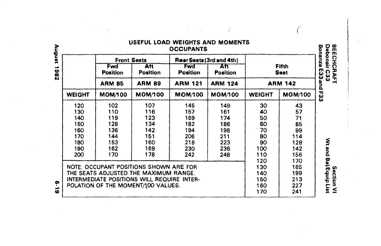 Beechcraft Bonanza E33 - Useful Load Weights and Moments; Occupants