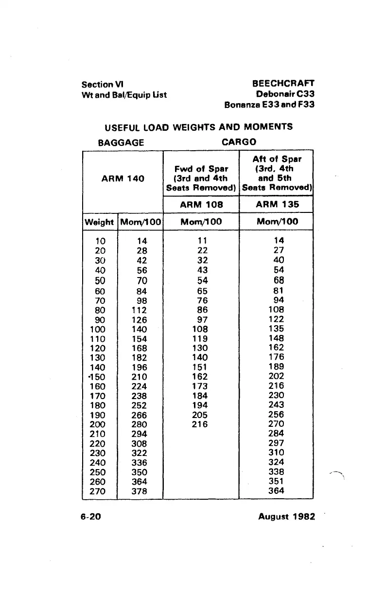 Beechcraft Bonanza E33 - Baggage; Cargo