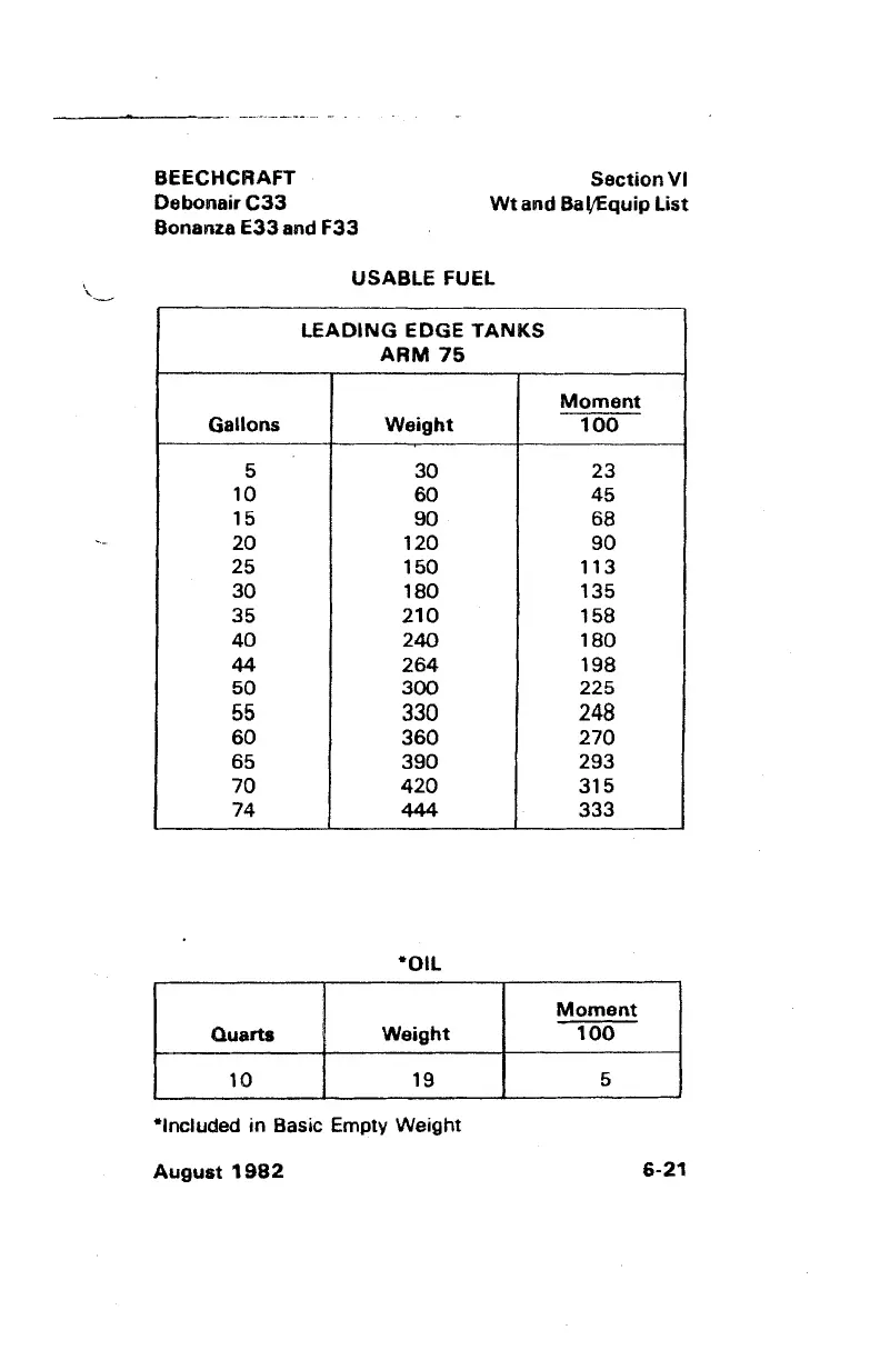 Beechcraft Bonanza E33 - August 1982; Usable Fuel