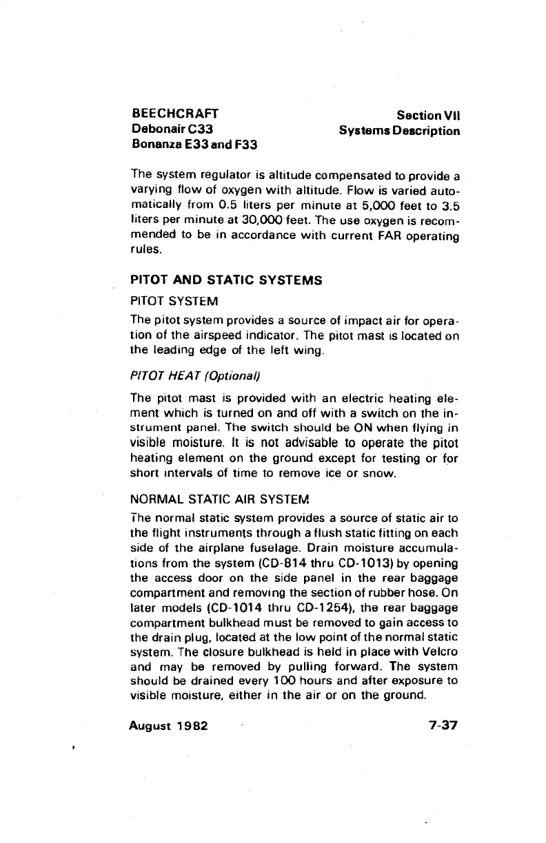 Beechcraft Bonanza E33 - Pitot System; Pitot Heat; Normal Static Air System