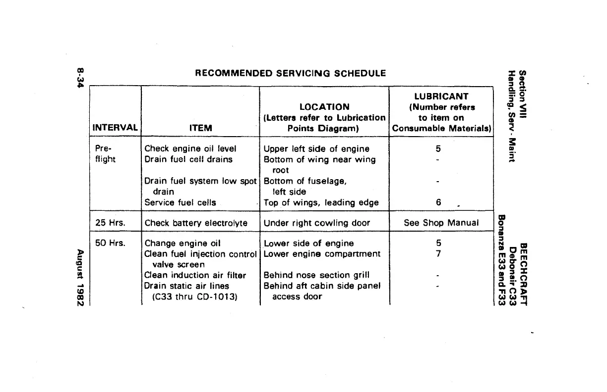 Beechcraft Bonanza E33 - Recommended Servicing Schedule