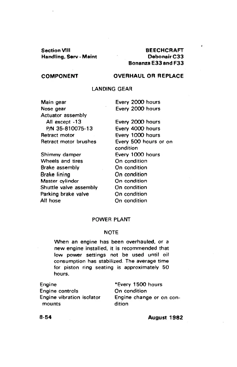 Beechcraft Bonanza E33 - Landing Gear; Power Plant