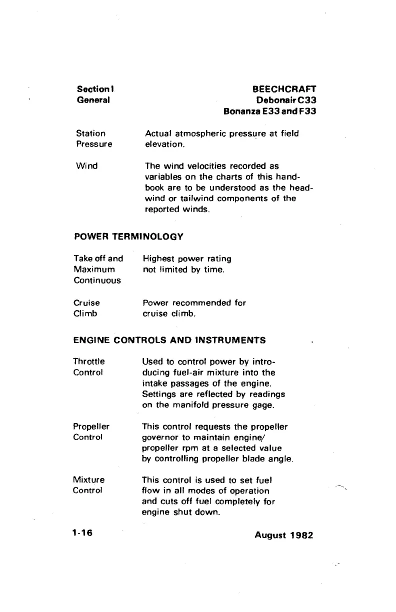 Beechcraft Bonanza E33 - Power Terminology; Engine Controls and Instruments