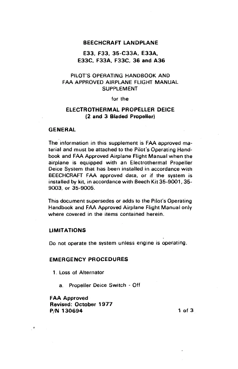 BEECHCRAFT FAA approved data,
