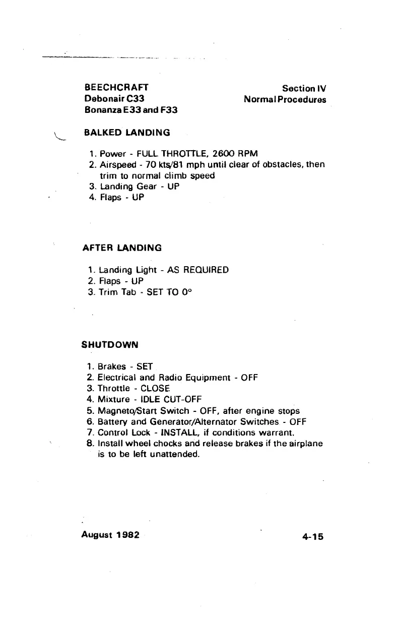Beechcraft Bonanza E33 - After Landing; Balked Landing; Shutdown