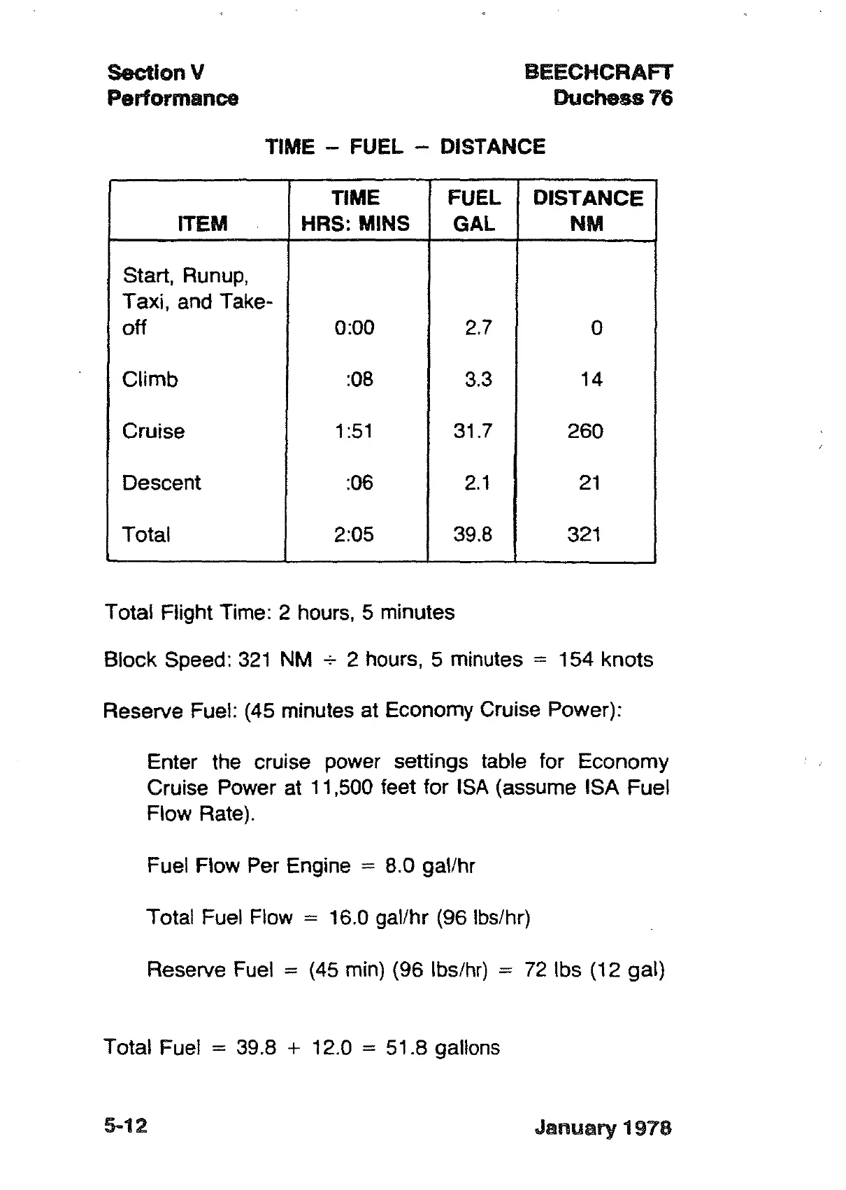 Reserve Fuel: (45 minutes at Economy Cruise Power):