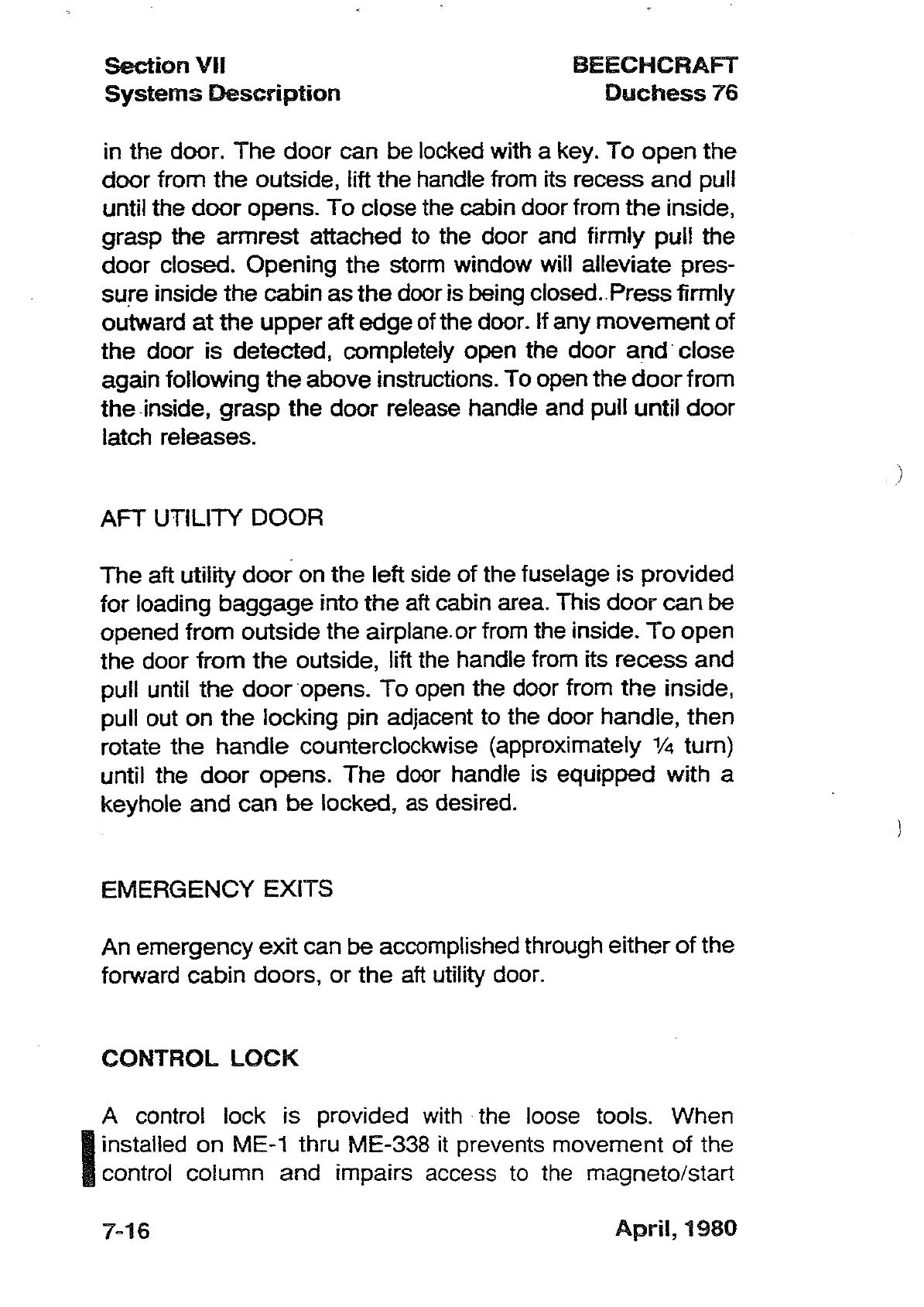forward cabin doors, or the aft utility door.