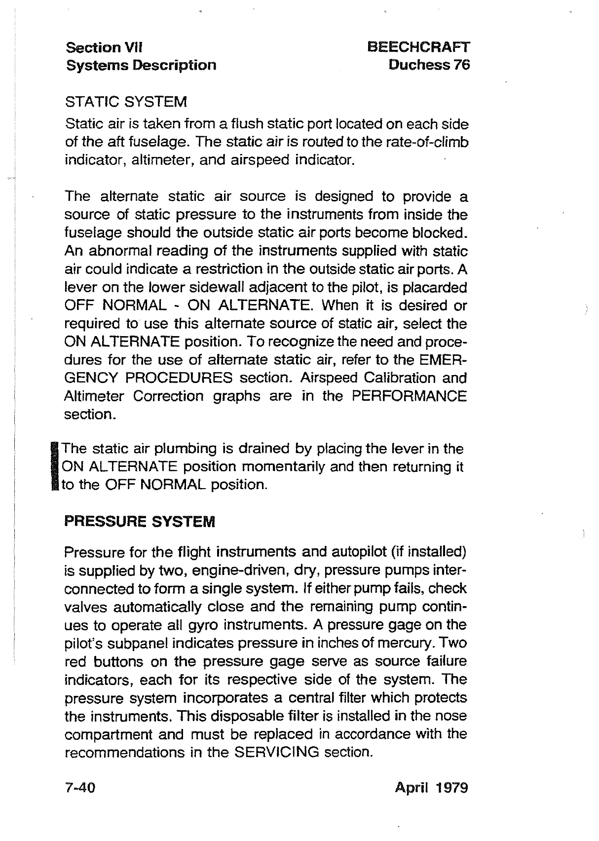 pilot's subpanel indicates pressure in inches ofmercury. Two