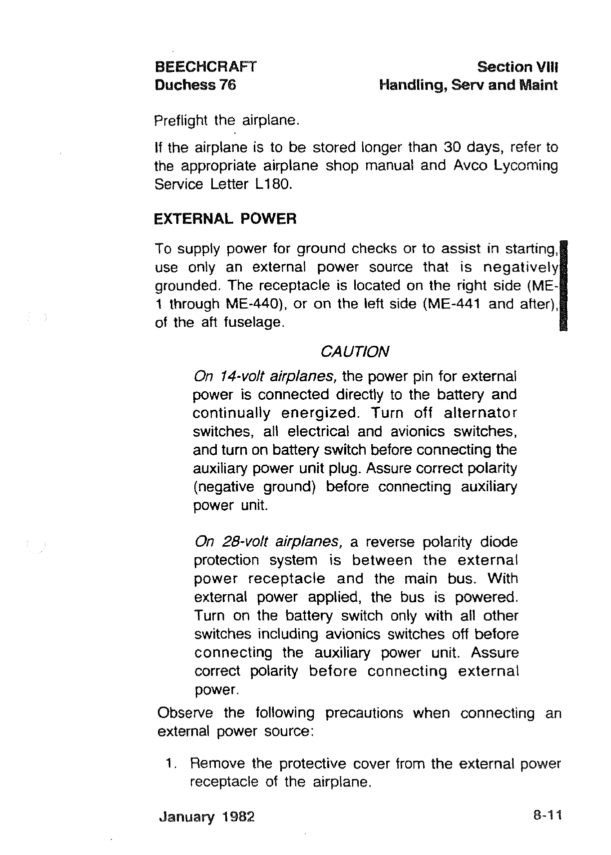 auxiliary power unit plug. Assure correct polarity