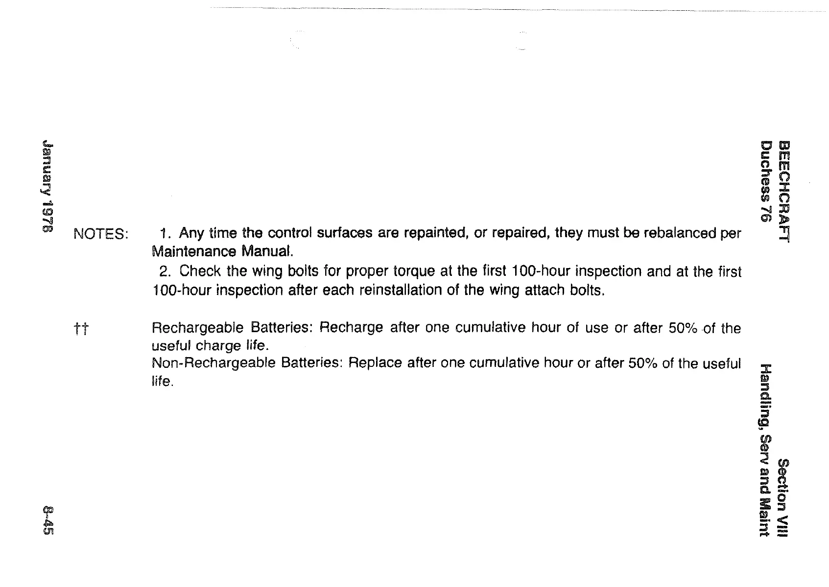Check the wing bolts for proper torque at the first 100-hour inspection and at the first
