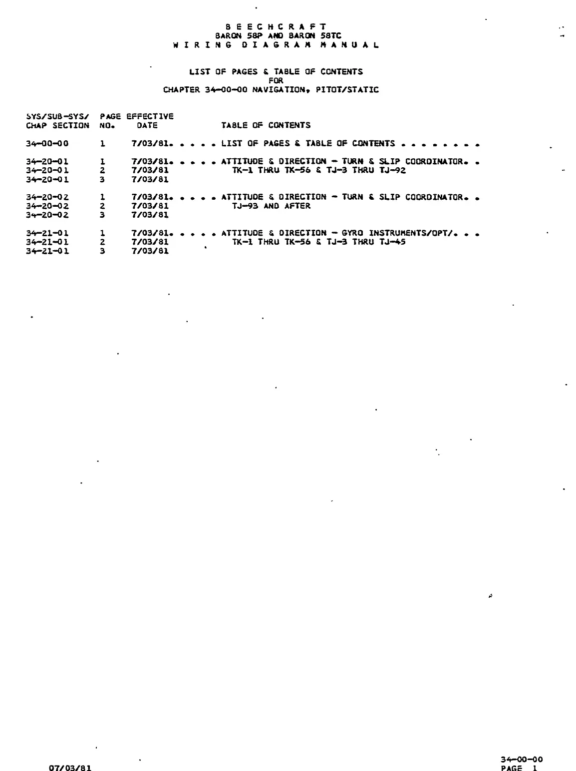 Beechcraft Pressurized Baron 58P - 34.00.00 List of Effective Pages
