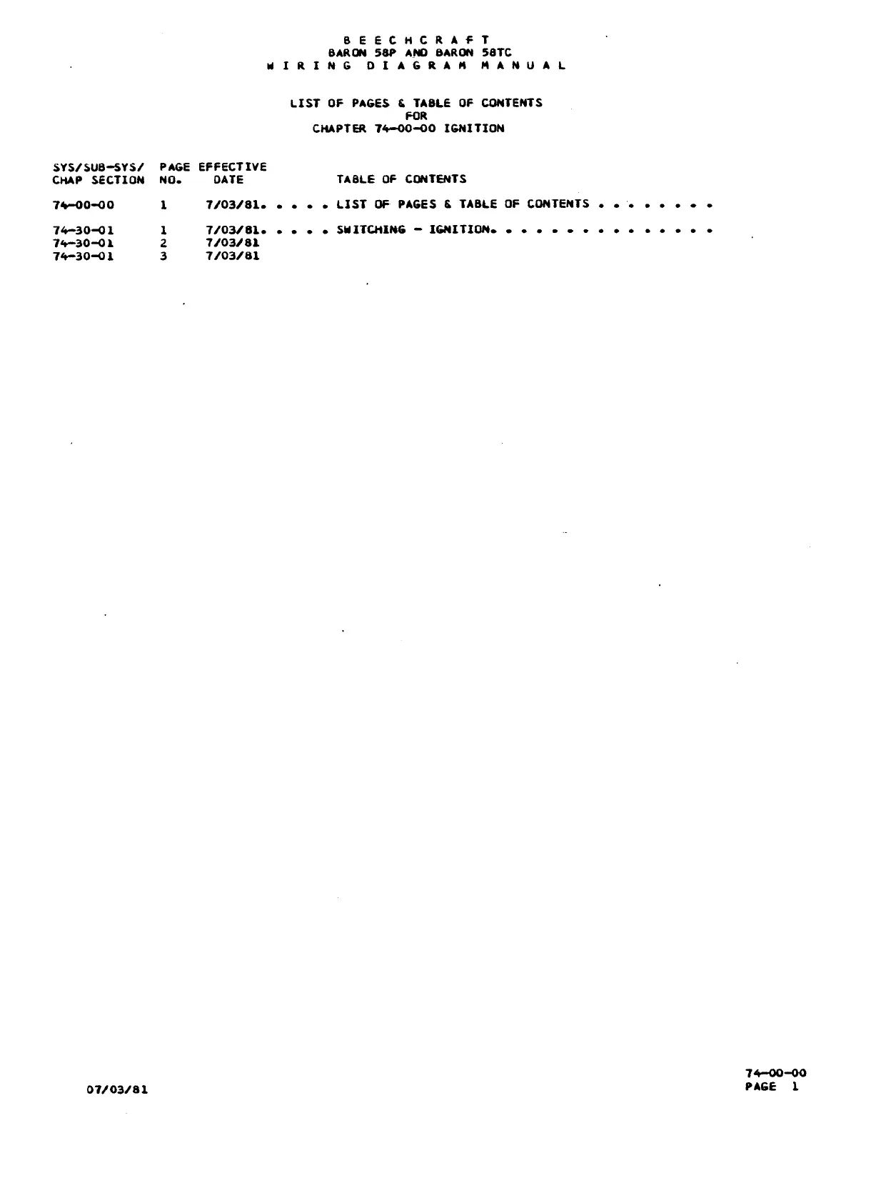Beechcraft Pressurized Baron 58P - 74.00.00 List of Effective Pages