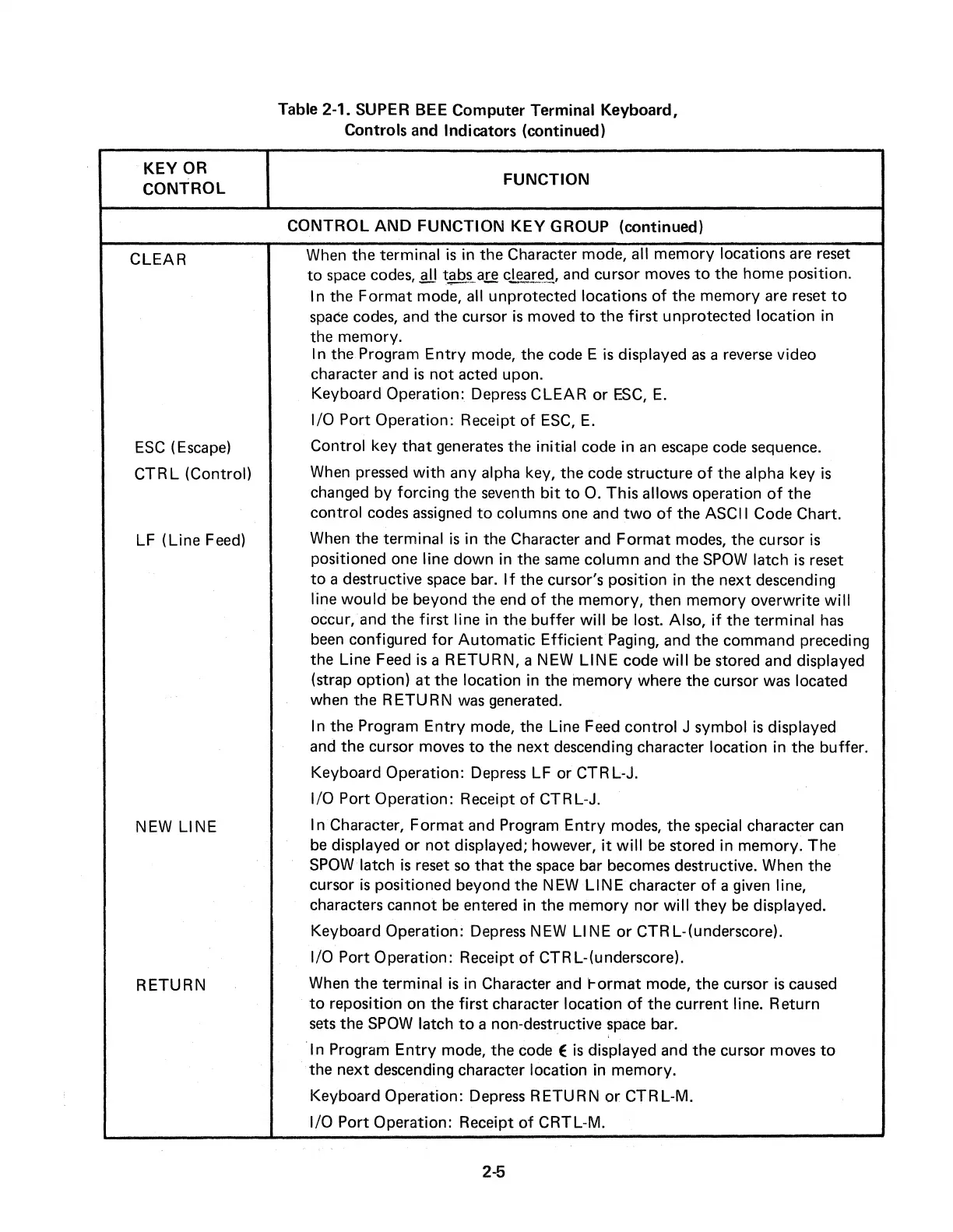 Table 2-1. SUPER BEE Computer Terminal Keyboard,