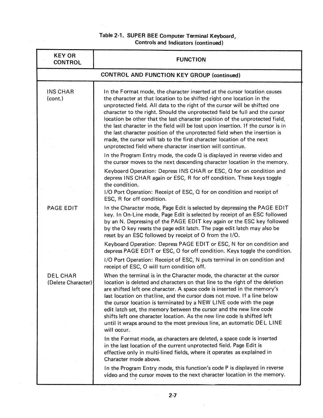 Table 2-1. SUPER BEE Computer Terminal Keyboard,