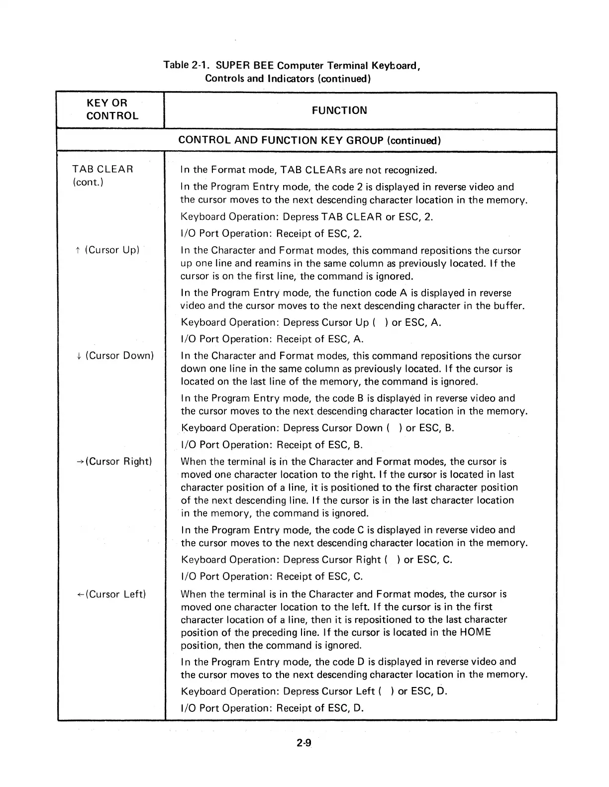 Table 2-1. SUPER BEE Computer Terminal Keyboard,