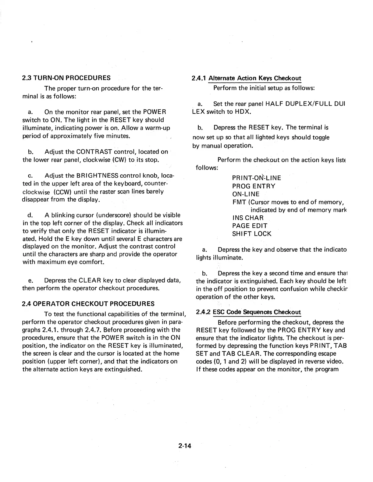 2.4 OPERATOR CHECKOUT PROCEDURES