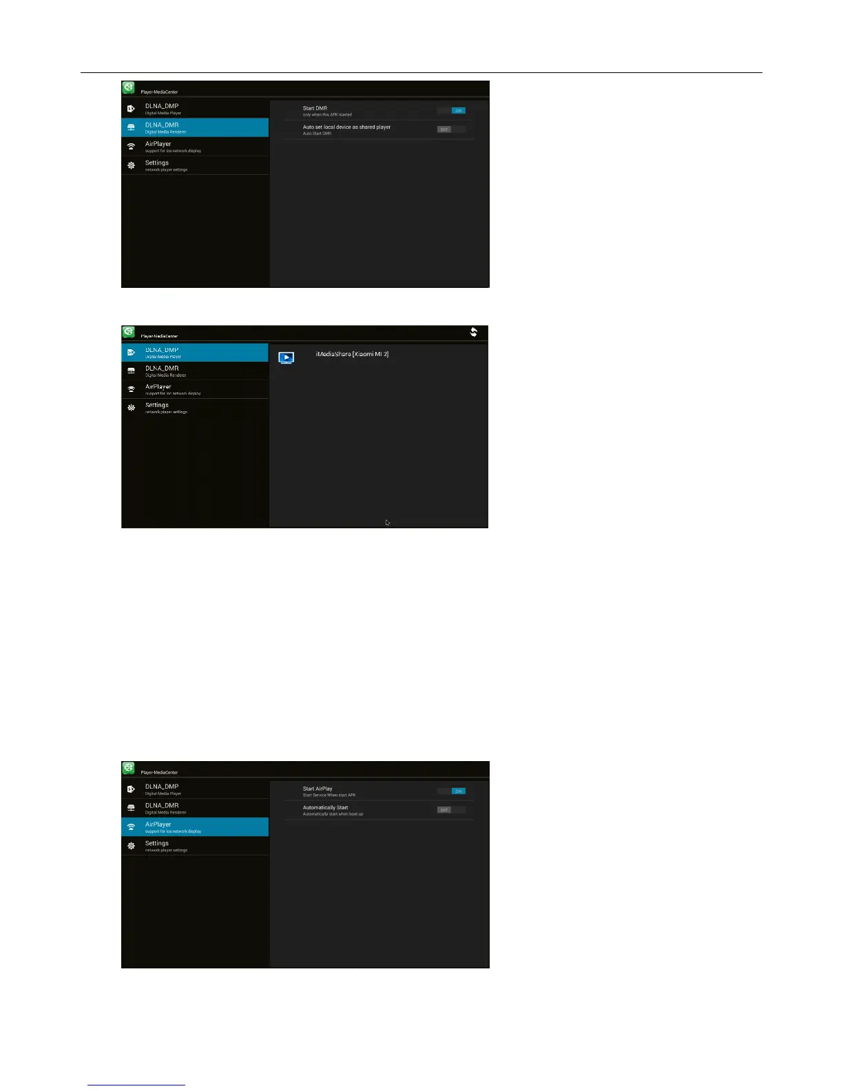 Home Screen My recommendMedia CenterAirPlayerStart AirPlayerON