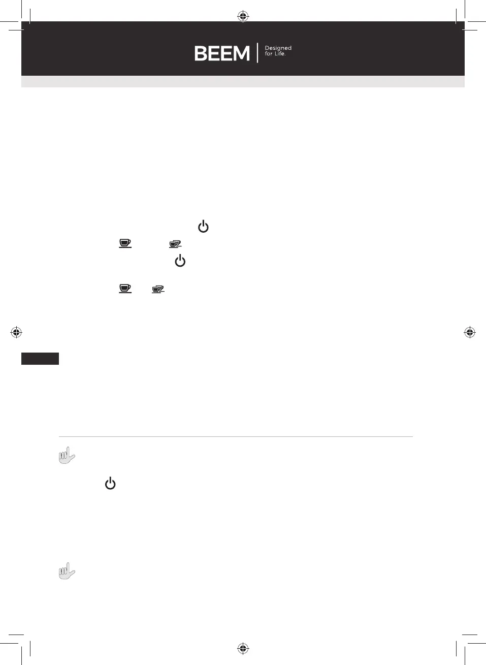 Tassenwärmer (15) geheizt. Nach Ablauf der 30 Minuten muss das Gerät über die