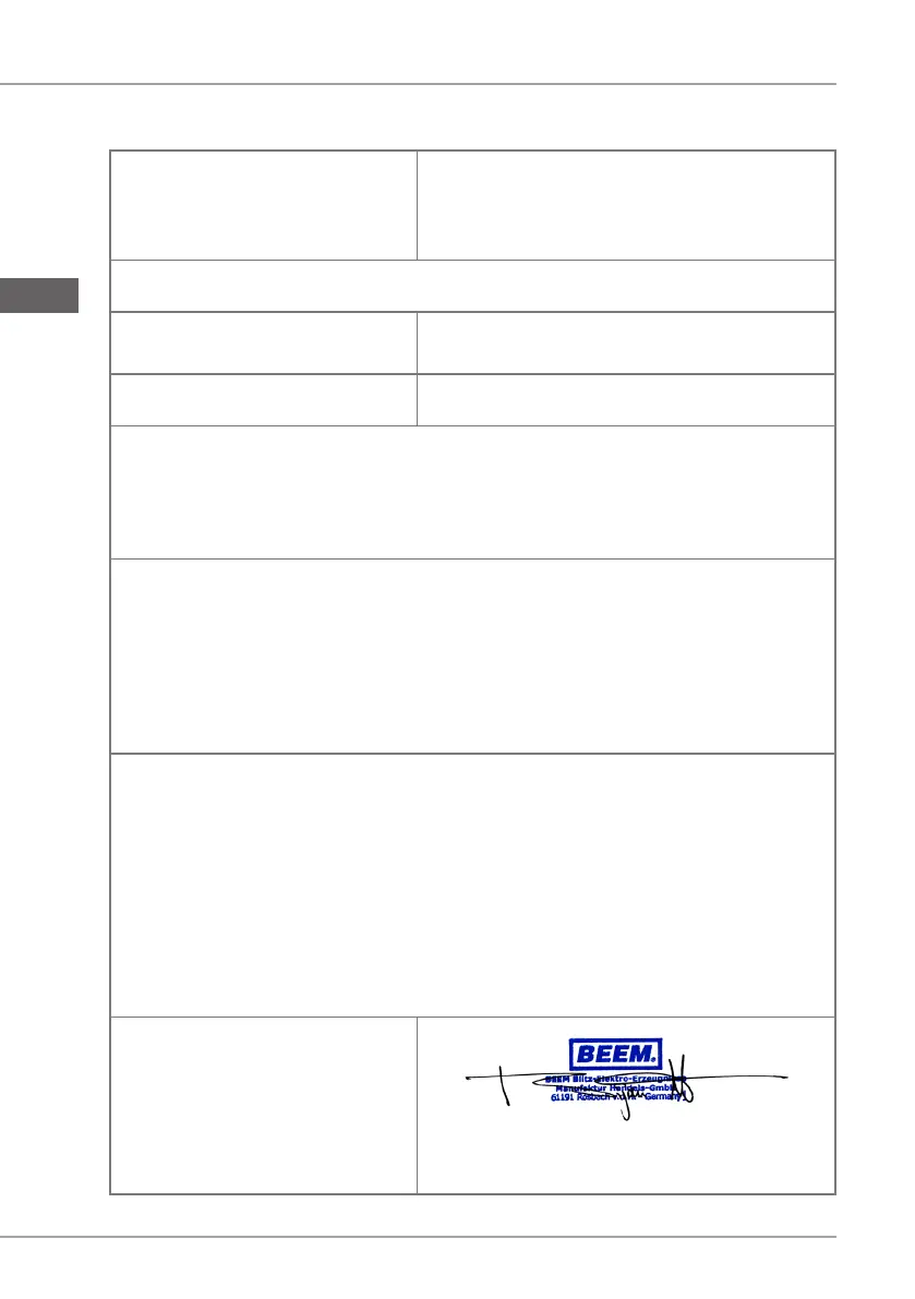 Naam/adres van de fabrikant: BEEM Blitz-Elektro-Erzeugnisse