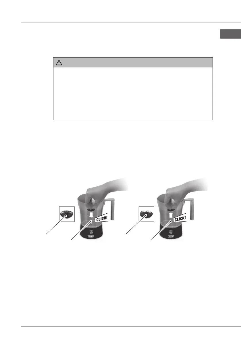 Setzen Sie den Milchbehälter (1) noch nicht auf die Sockel- ►