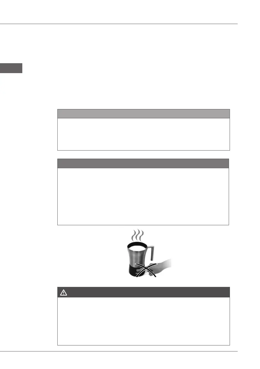 Ne touchez pas le pot à lait brûlant et ne le saisissez que par ►