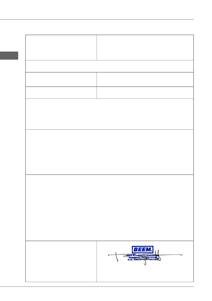 Nom/adresse du fabricant : BEEM Blitz-Elektro-Erzeugnisse
