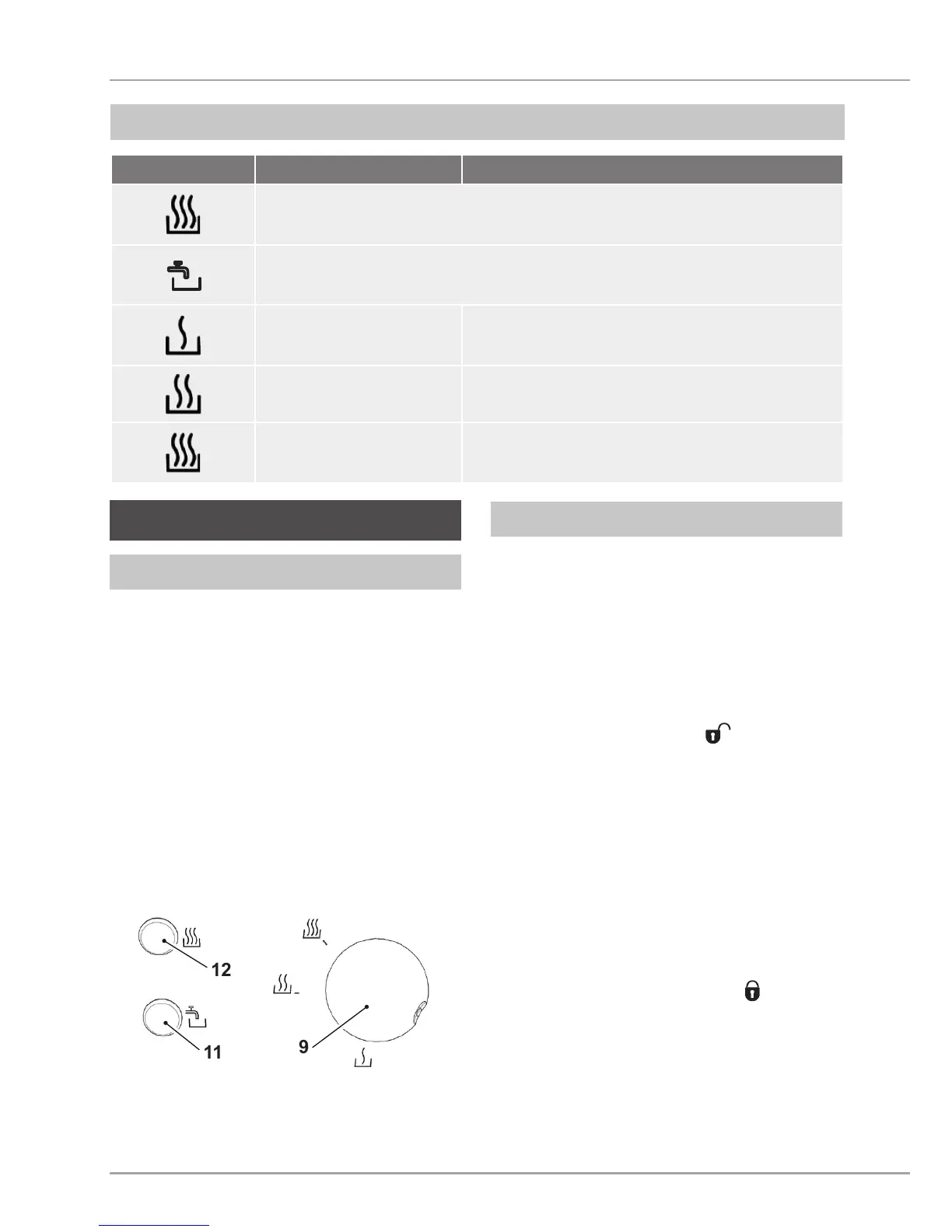 Rote Kontrollleuchte (11) leuchtet: Wasser nachfüllen, entkalken,