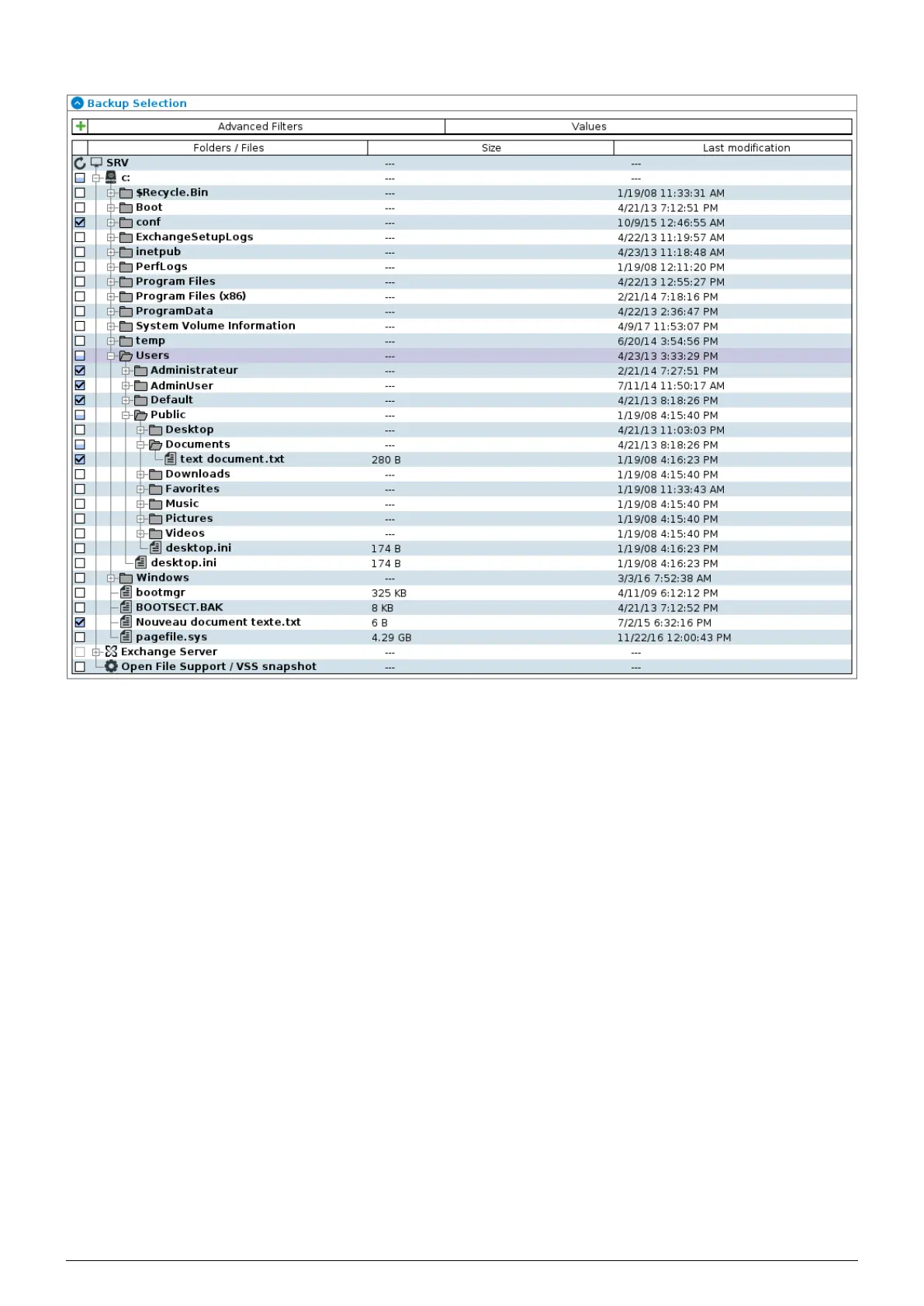FIGURE 6.15 – Tree structure of the files to be backed up
