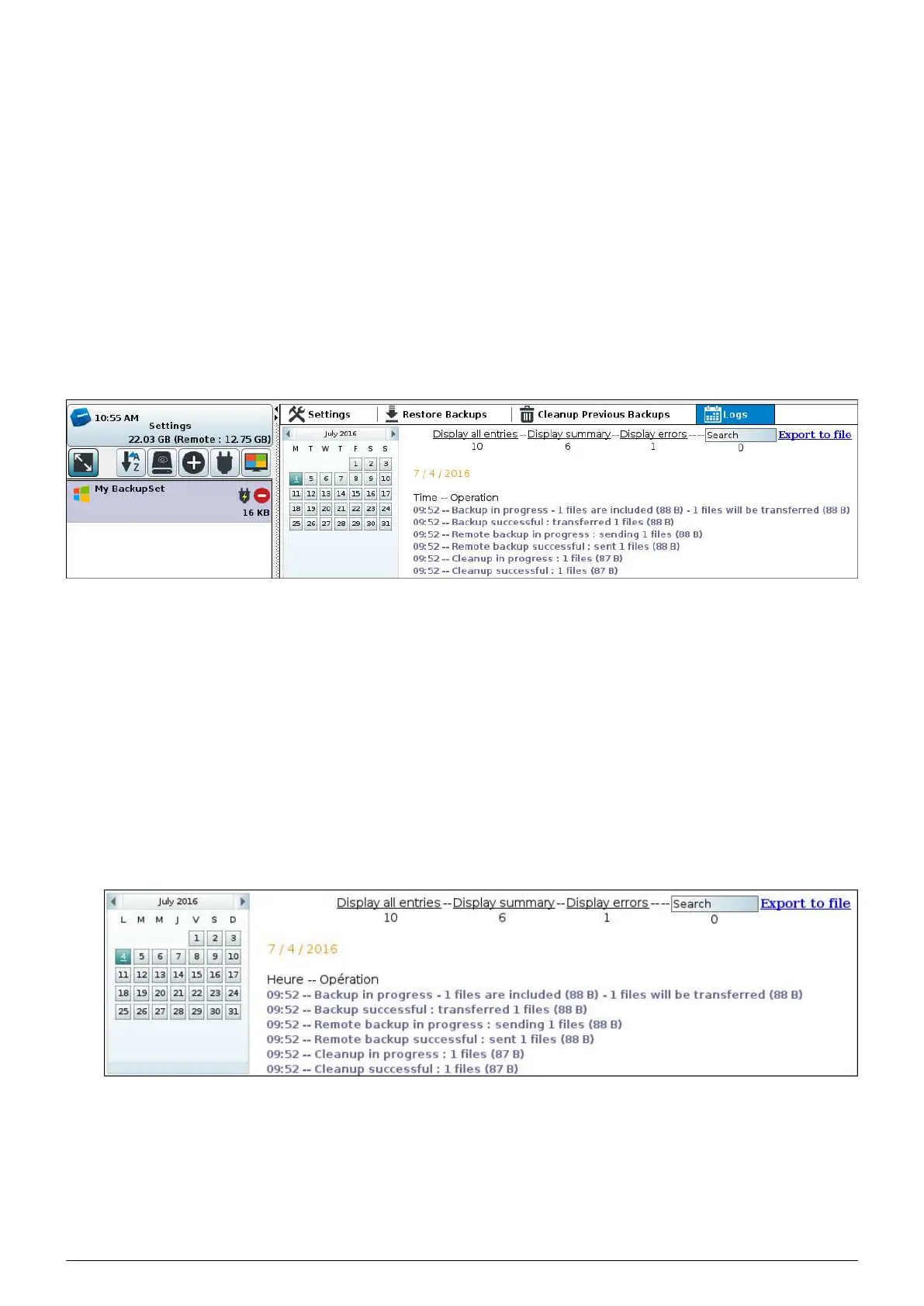 4. View the logs depending on the days chosen. Viewable days are highlighted on the calendar.
