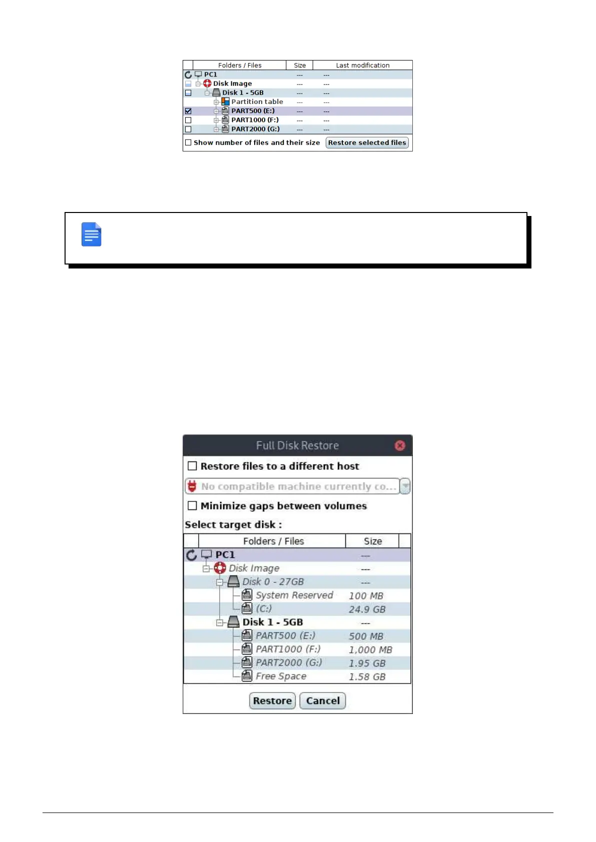Restore tab, if you select a disk or several volumes and you click on Restore selected files, the Full disk