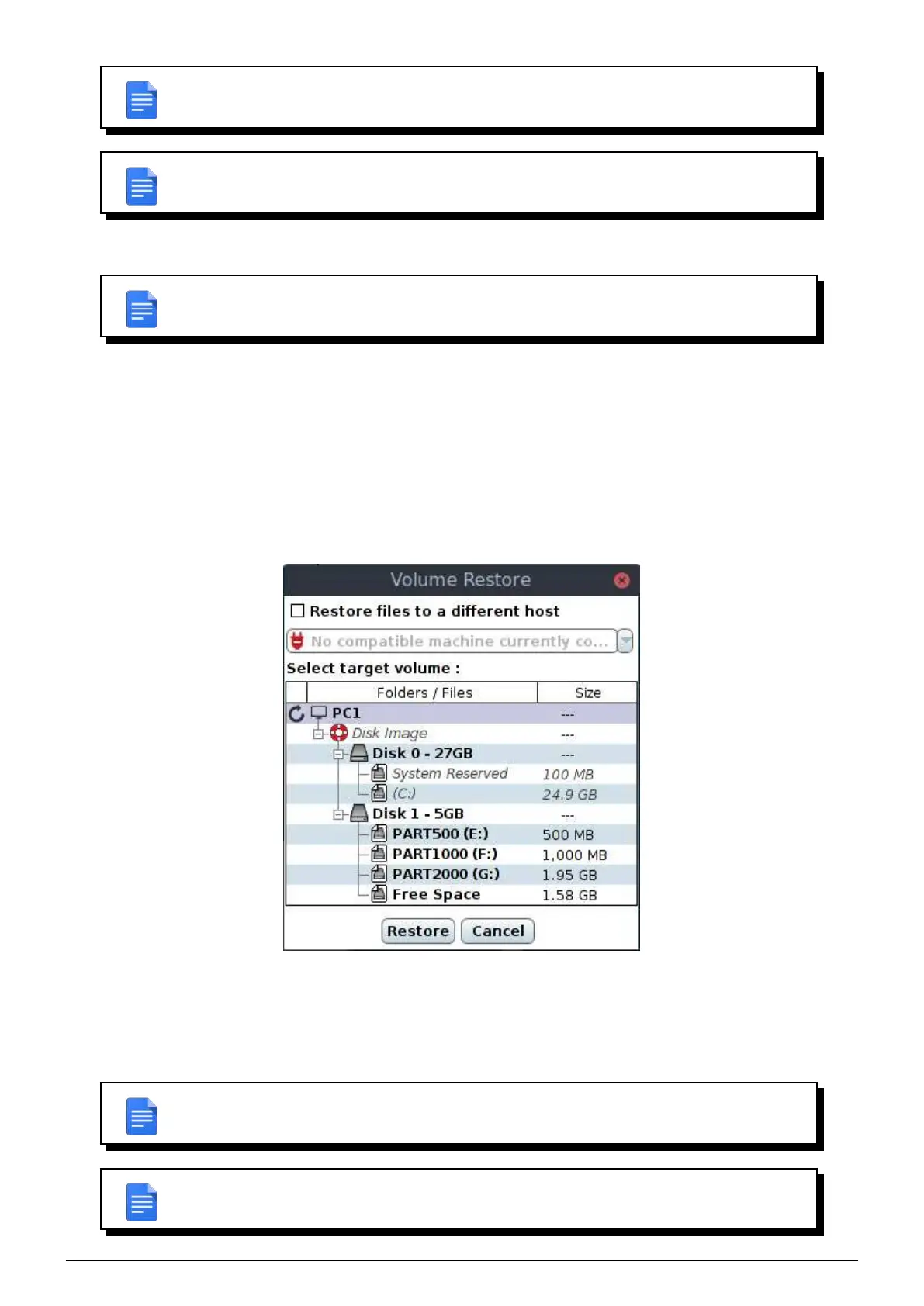 REMARK : Invalid volumes as restoration target are shown in italic and greyed.