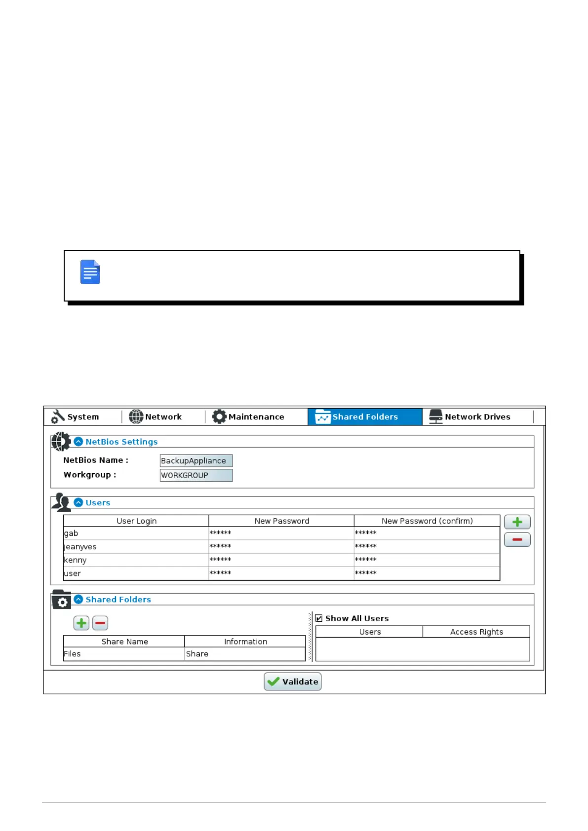 FIGURE 14.1 – Shared folders administration page of the Beemo appliance
