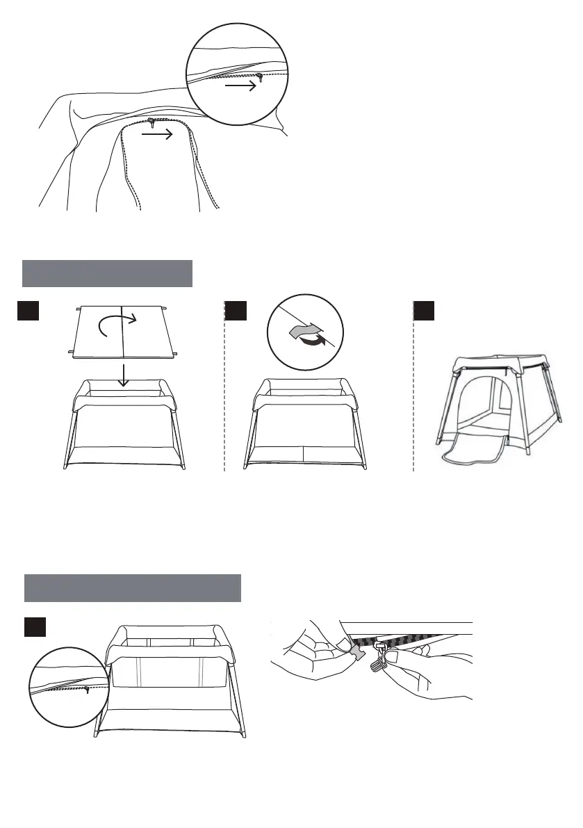 3.Åbn/luk lynlåsen på den korte side for at åbne/lukke indgangen til dit barn.