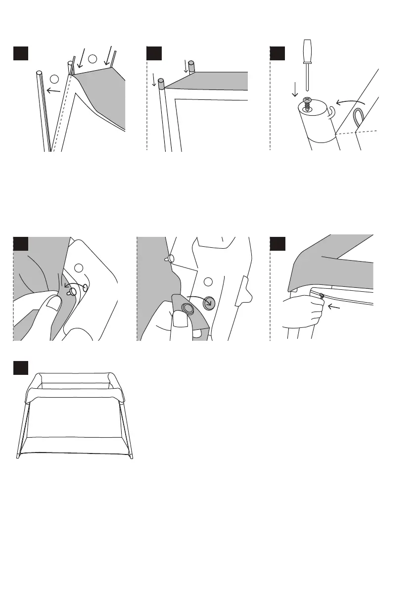 af sengens hjørne. Luk trykknappen. Gentag for alle fire