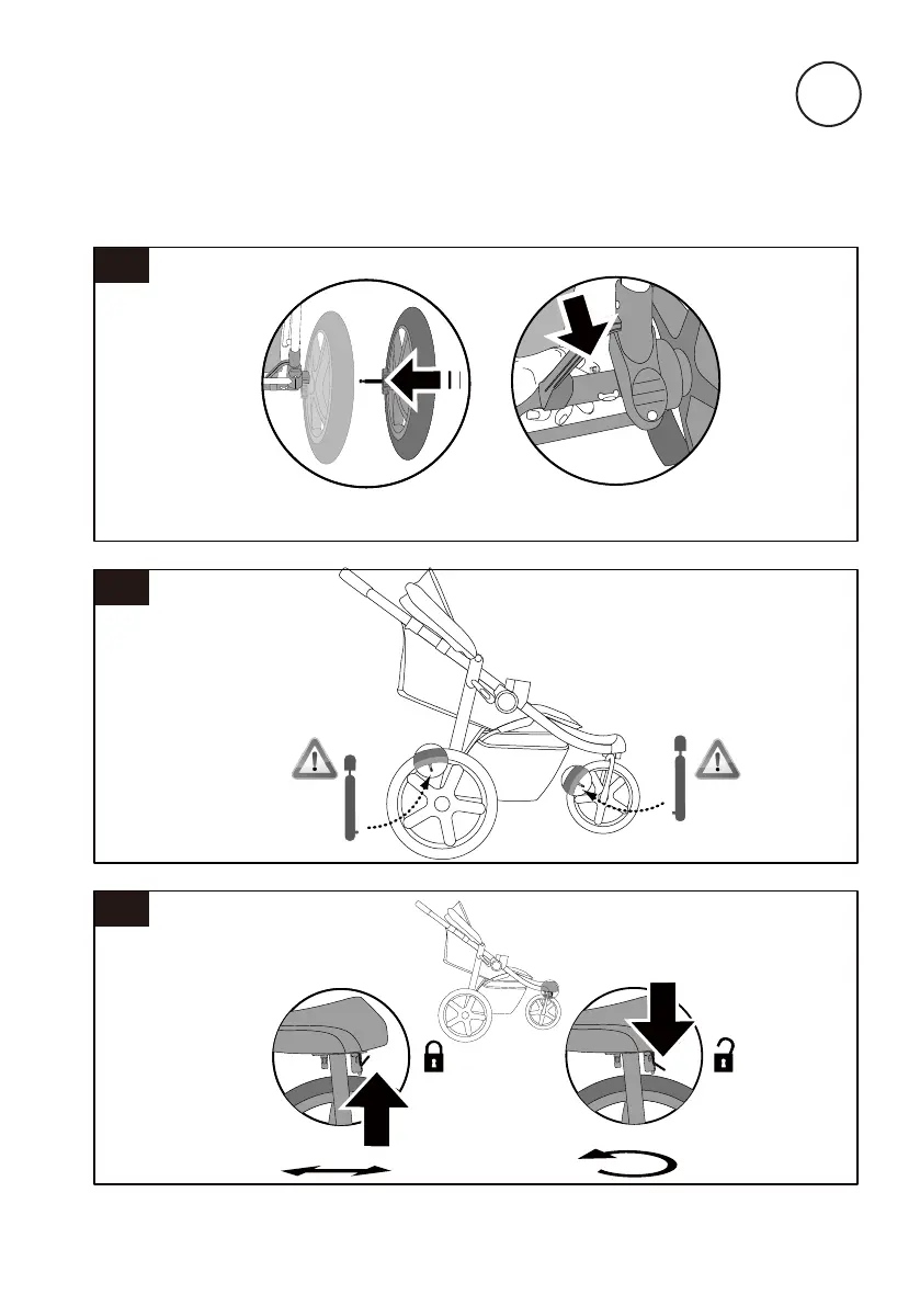 Beemoo ACTIVITY GO - Wheel Installation and Inflation; Brake and Locking Mechanisms