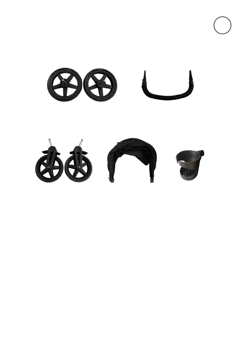 Front wheel x2 Canopy x1 Cup holder x1