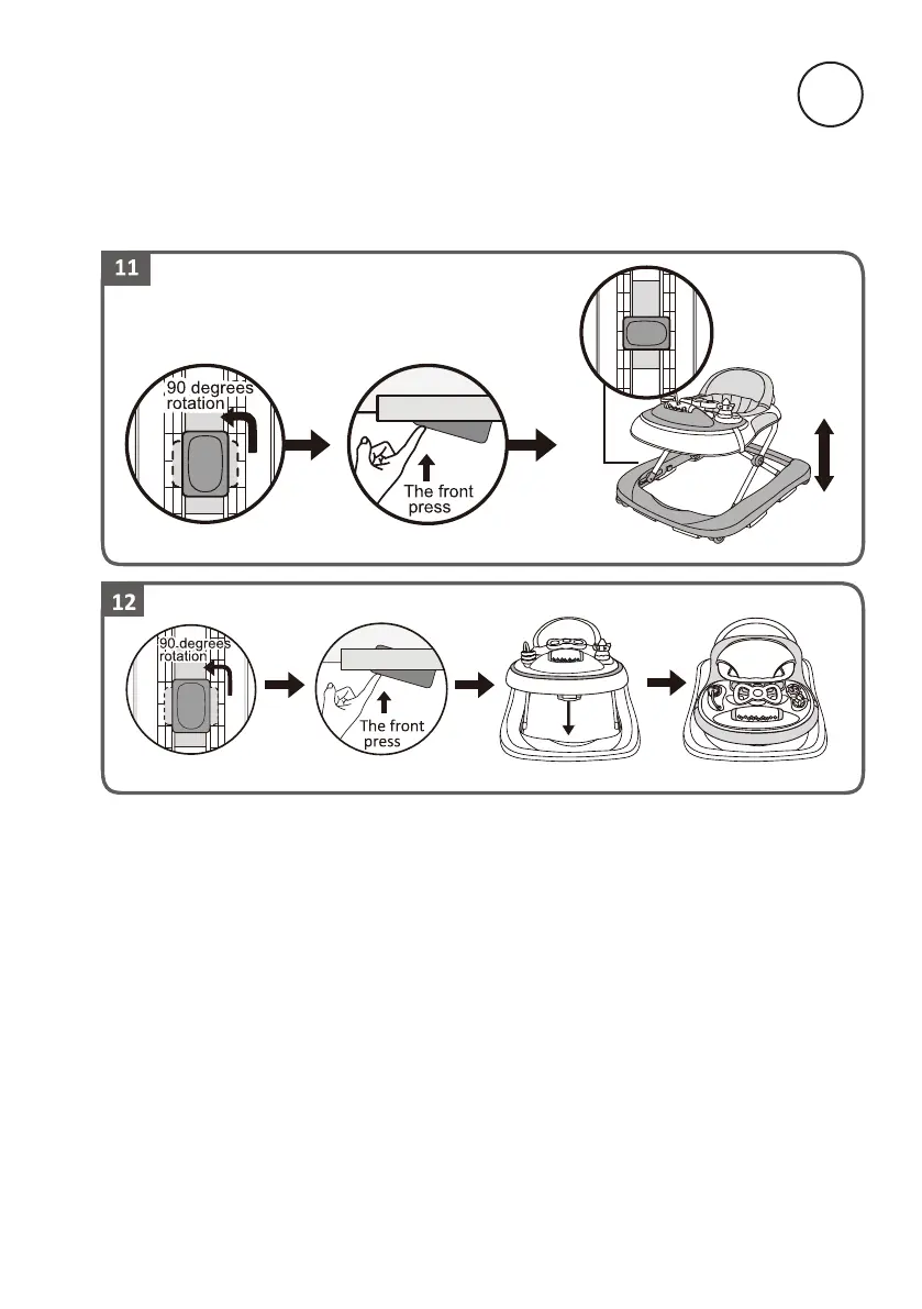 To adjust the seat's height, remove the child from the baby walking frame, pull up the